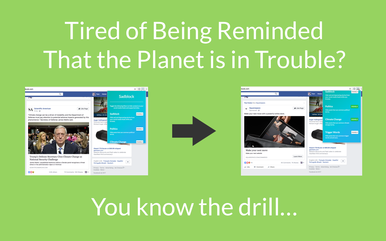 This is actually rather absurd and, sadly (no pun intended), a sign of the times. Bad things happen in the world and, without mentioning the idea of doing something about it, the response is to set up an alternate reality where it doesn't exist. 🙄