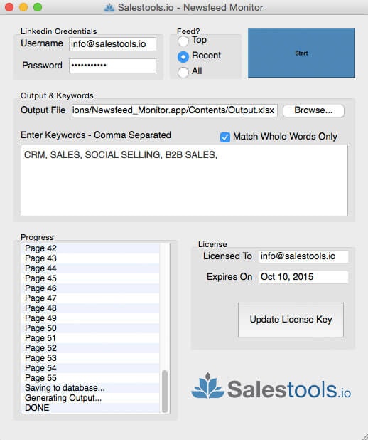 Extract searches from Linkedin to Excel or Monitor your newsfeed for keywords to obtain leads.
