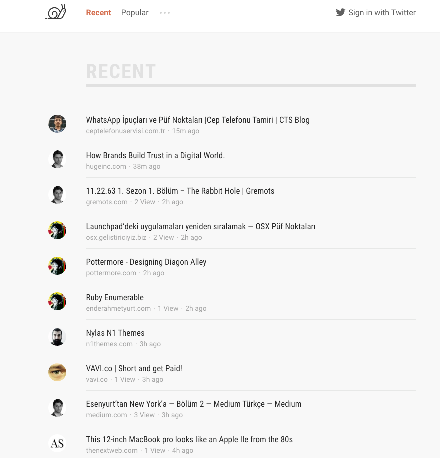 Salyangoz is a realtime link sharing platform. Comparing to Pocket or any other bookmark saving tools, Salyangoz is not a bookmark saving tool. Its behavior is Snapchat-ish. With the browser extension, you will be able to share your links on Salyangoz. It allows you to have a cleaner approach to view links up-to-date and daily.