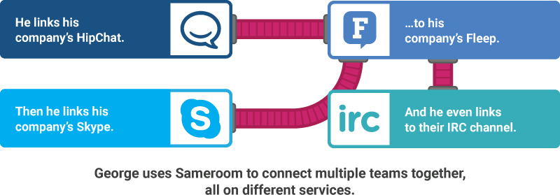 In the interest of disclosure, I'm an investor in the company. I think this is a very useful solution if you're looking to connect disparate teams that are on different chat services (HipChat, Slack, etc) without requiring everyone to standardize on one client.