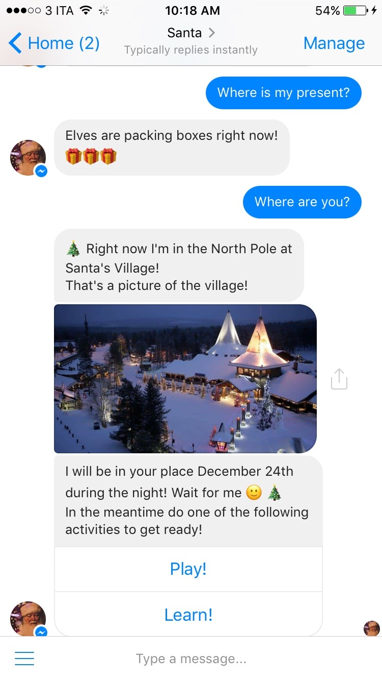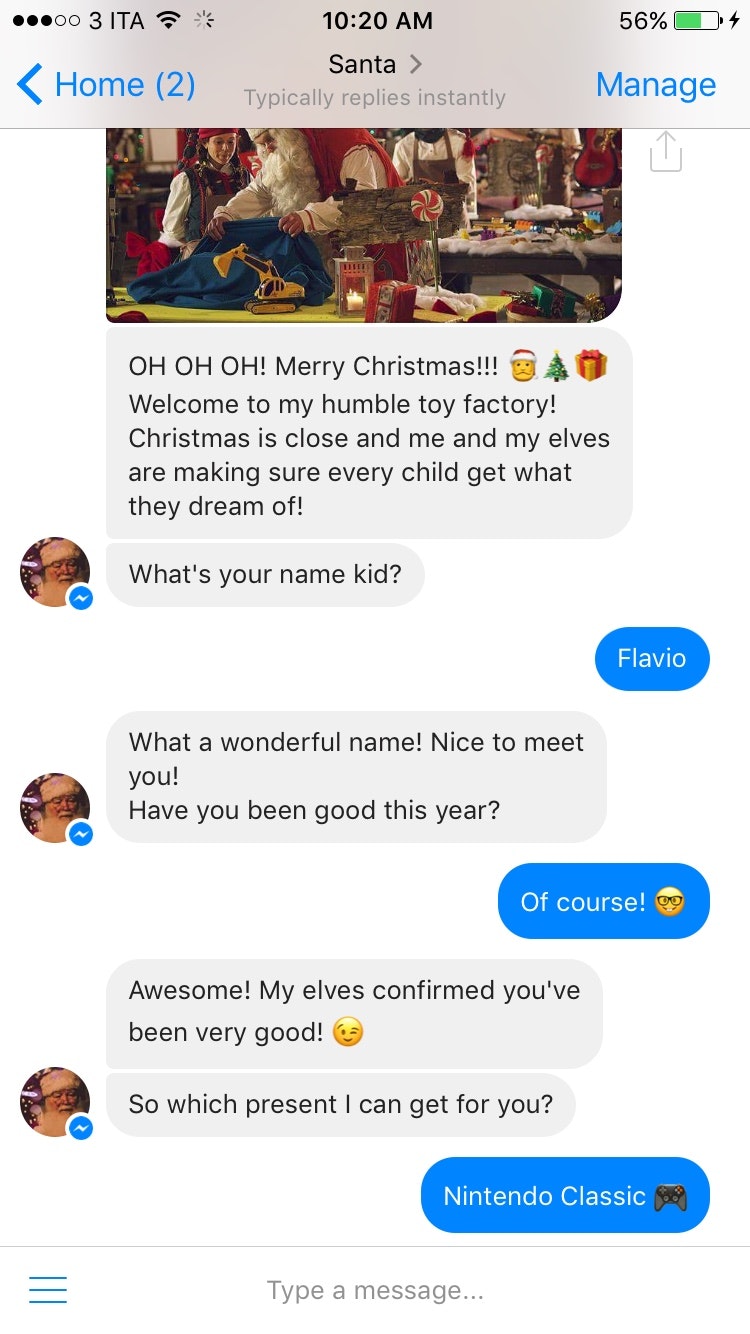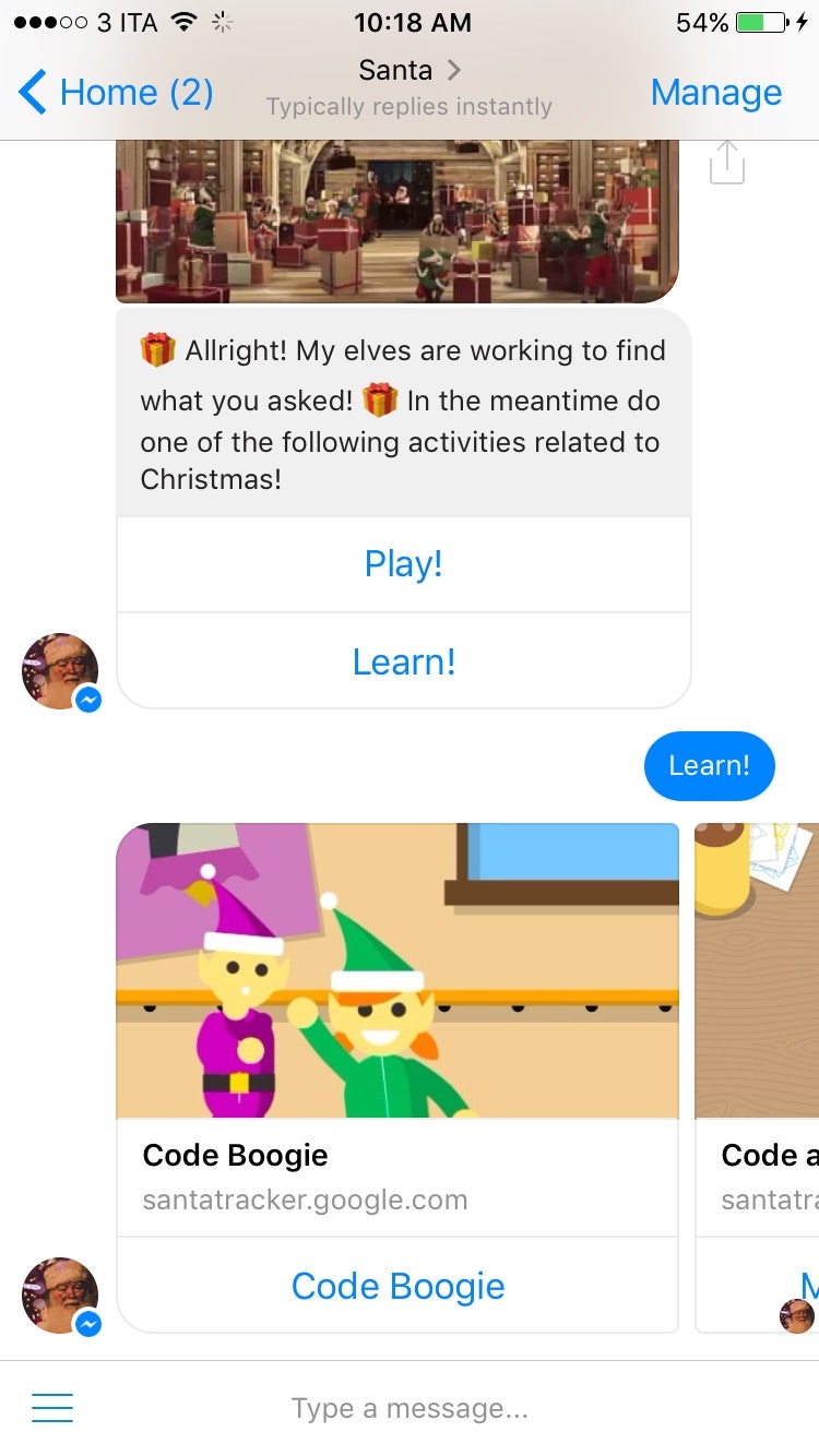 Hi, ProductHunt! 🎄 🎅 Christmas is coming and this year we decided to built a SantaBOT with Chatfuel to find out what our young nephews were dreaming to receive from Santa. We also integrated Google Christmas games to let them approaching coding and having fun at the same time! 🙂