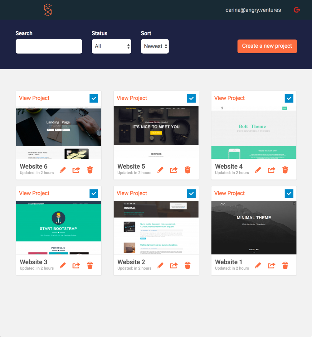 There are a lot of drag and drop website creator tools on the web today. I have tried a lot of them, for professional and personal research. My solution after testing dozens of them and getting a beta invite from Angry Ventures for their new product 'SAUL' -- It's awesome and really great for building quick responsive websites.