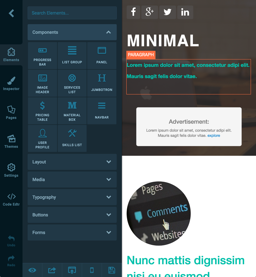 SAUL is a drag and drop, free and responsive website creator that helps you build your own pages online.