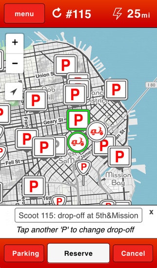 Found out about Scoot in San Fransisco and was surprised to find that they hadn't been hunted yet! I'd dare say this qualifies as alternative transport and at $2 bucks a ride, I can't wait to see this expand to new markets. The scooters are all electric and have a 25 mile range.