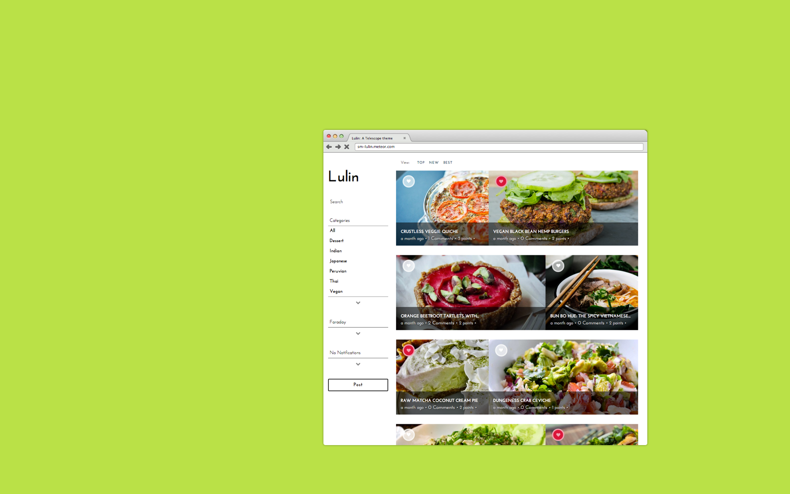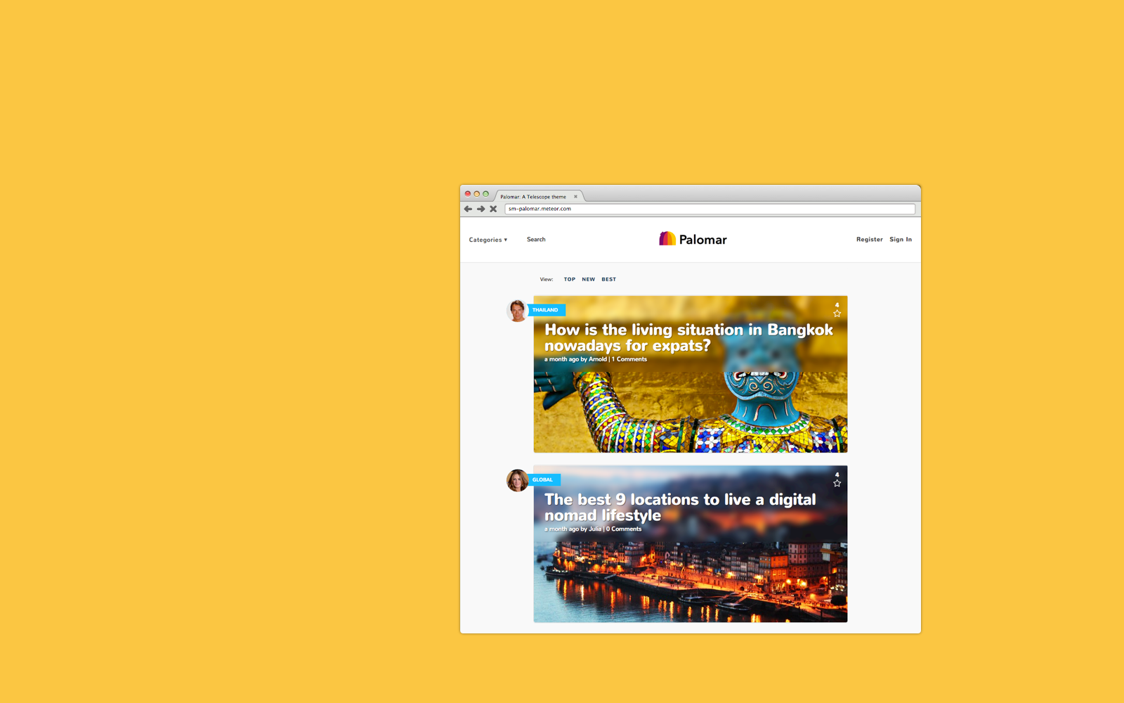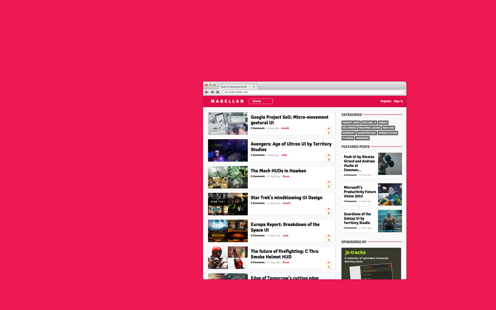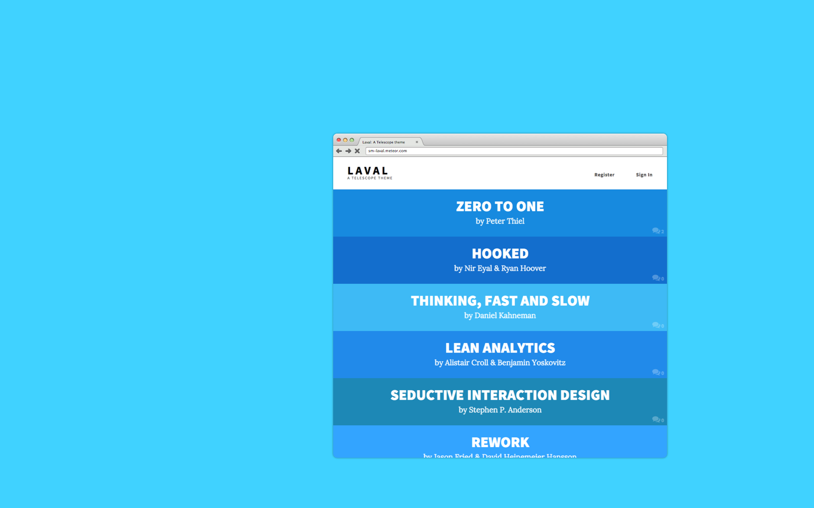I was working for many years with Wordpress and in the last weeks, i am really fascinated about Telescope and the potencial for building sideprojects, communities and more. This list of themes for Telescope are awesome.