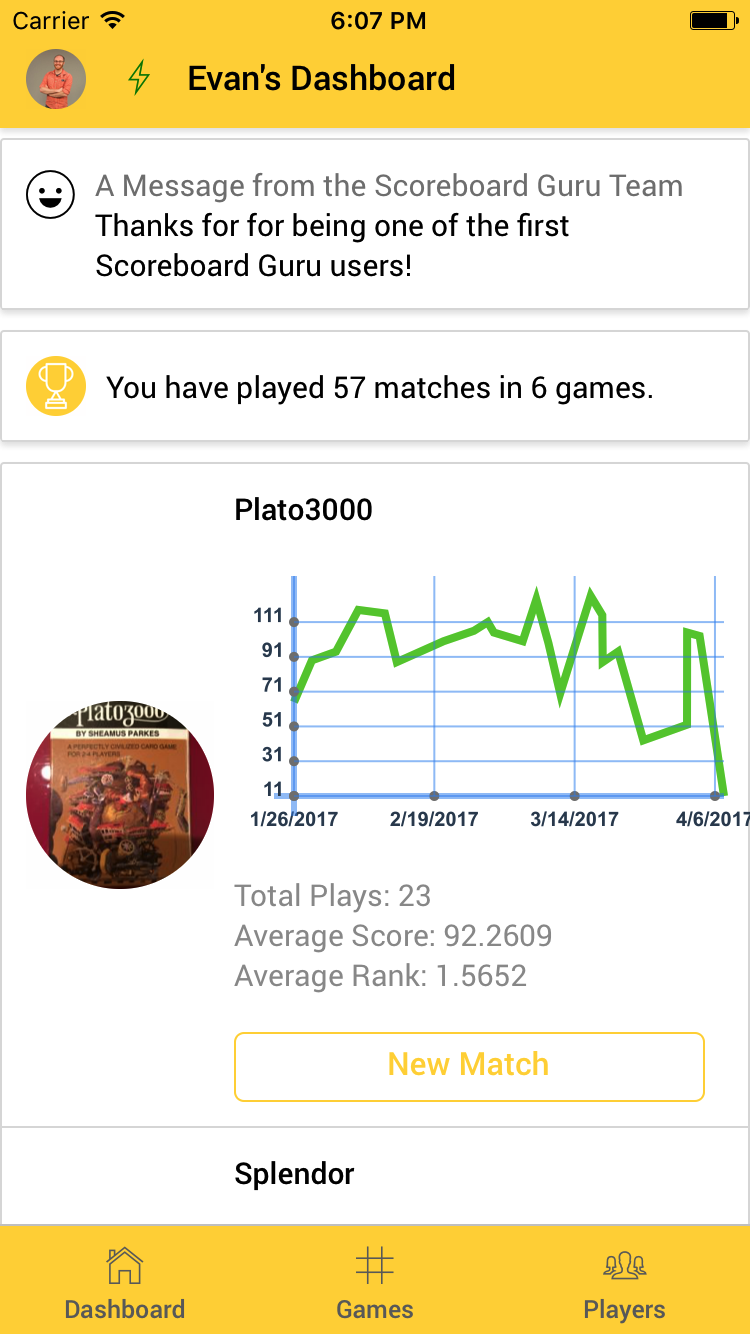 Hi Product Hunt! I’m a nerd, and I play a lot of board games. I’ve always wondered how I compared to the rest of my friends and family. I built Scoreboard Guru to not only keep track of my scores over time, but also to allow friends to compare their performance with each-other and see how they stack up.