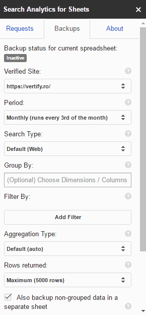 - Retrieve custom grouped and/or filtered Search Analytics data directly into any spreadsheet