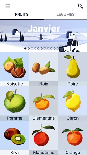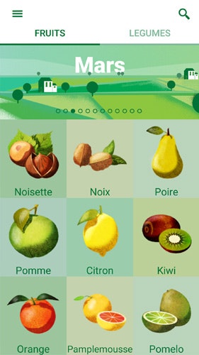 Calendar of seasonal fruits and vegetables in France.