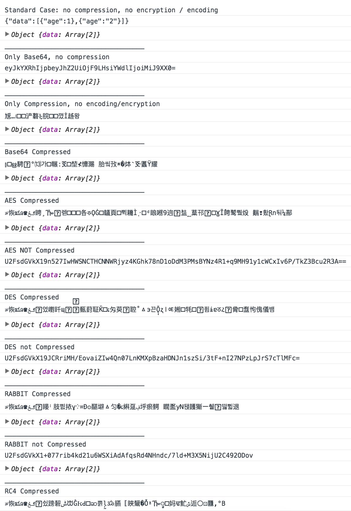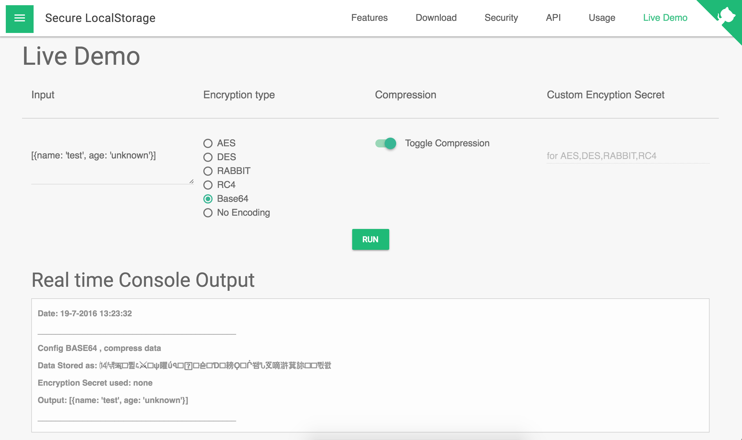 1. Secure data with various types of encryption including AES, DES, Rabbit and RC4. (defaults to Base64 encoding). Secret-key, if not custom, is also secured using PBKDF2.