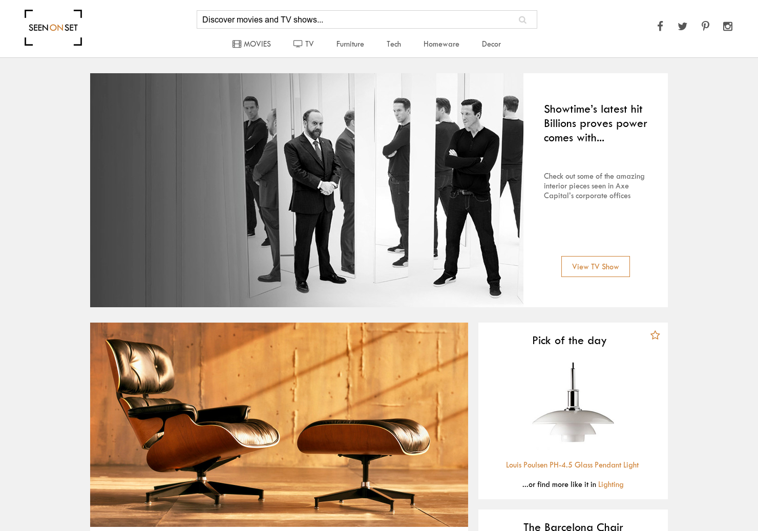 Cool idea. Have seen a similar site that's just for Big Bang Theory (there's so much product placement in that show), but this has everything! Having just re-watched Mad Men on Netflix, it's pretty exciting to see all the furniture they use on there.