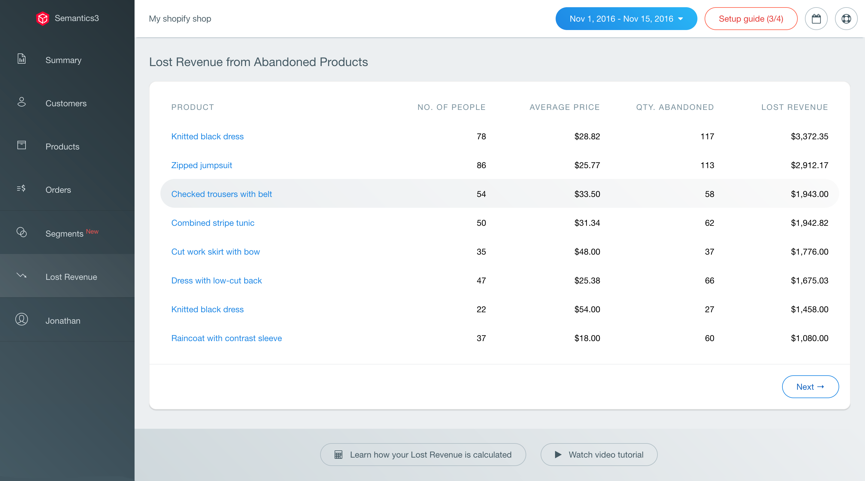 Here's how it works: Once you install the tracker on your webstore, the system starts recording all user interaction on the products in the store. It then matches these interactions to specific purchases, add-to-cart behaviour, churn and so on. The end result? A user-centric view on your revenue and sales! You can view which customers kept coming back to you… See more