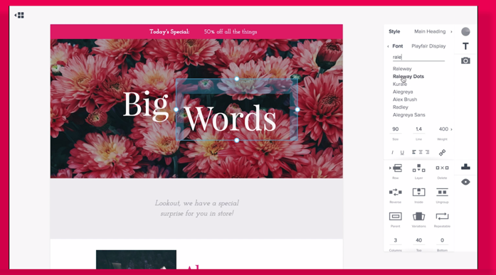 Instead of writing markup code, with Send.Design you just simply use the visual editor to create beautiful designs using the core design elements such as typogra… See more