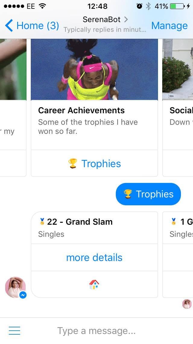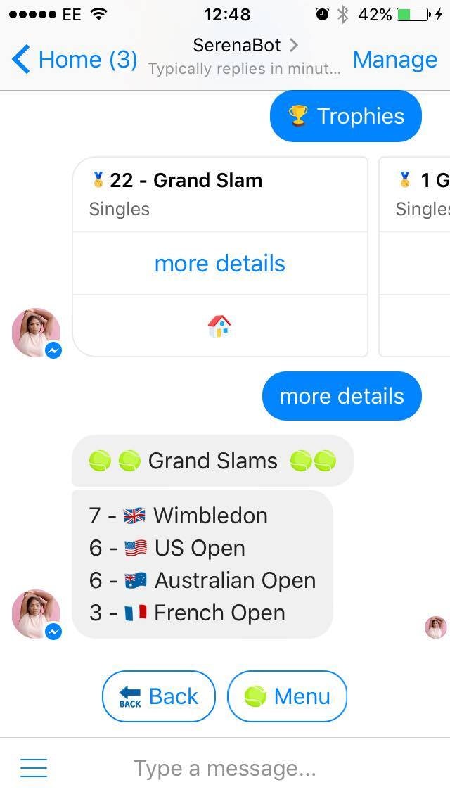 I loved what @bentossell and @joshbocanegra did with their celebrity chat-bots respectively, so thought why not create one for Serena Williams.