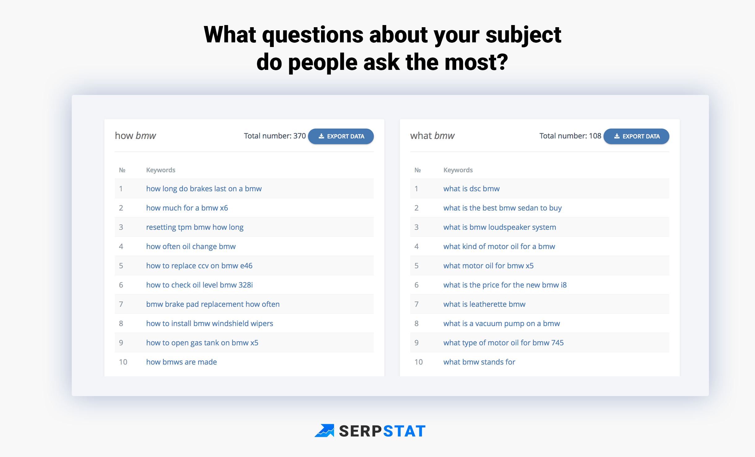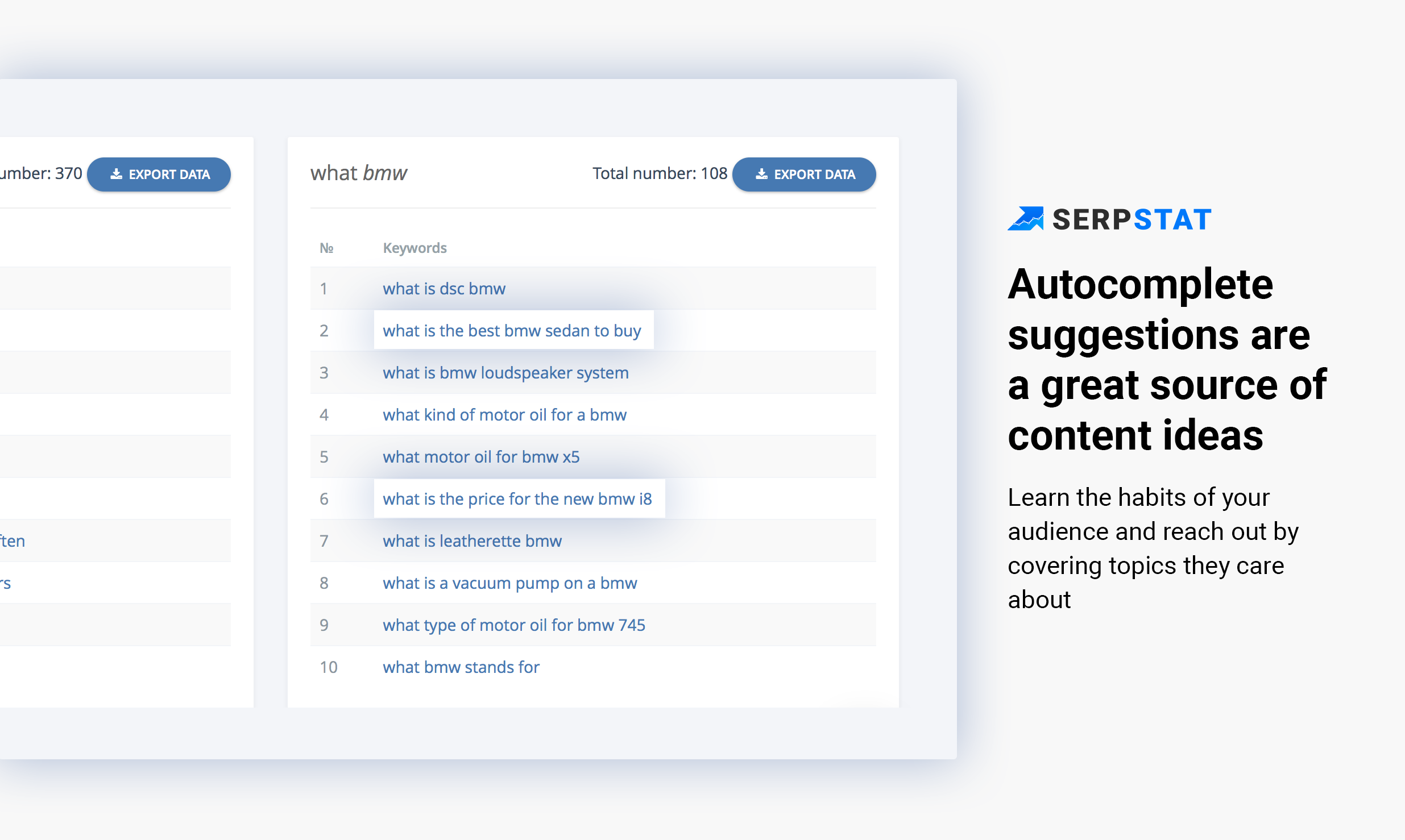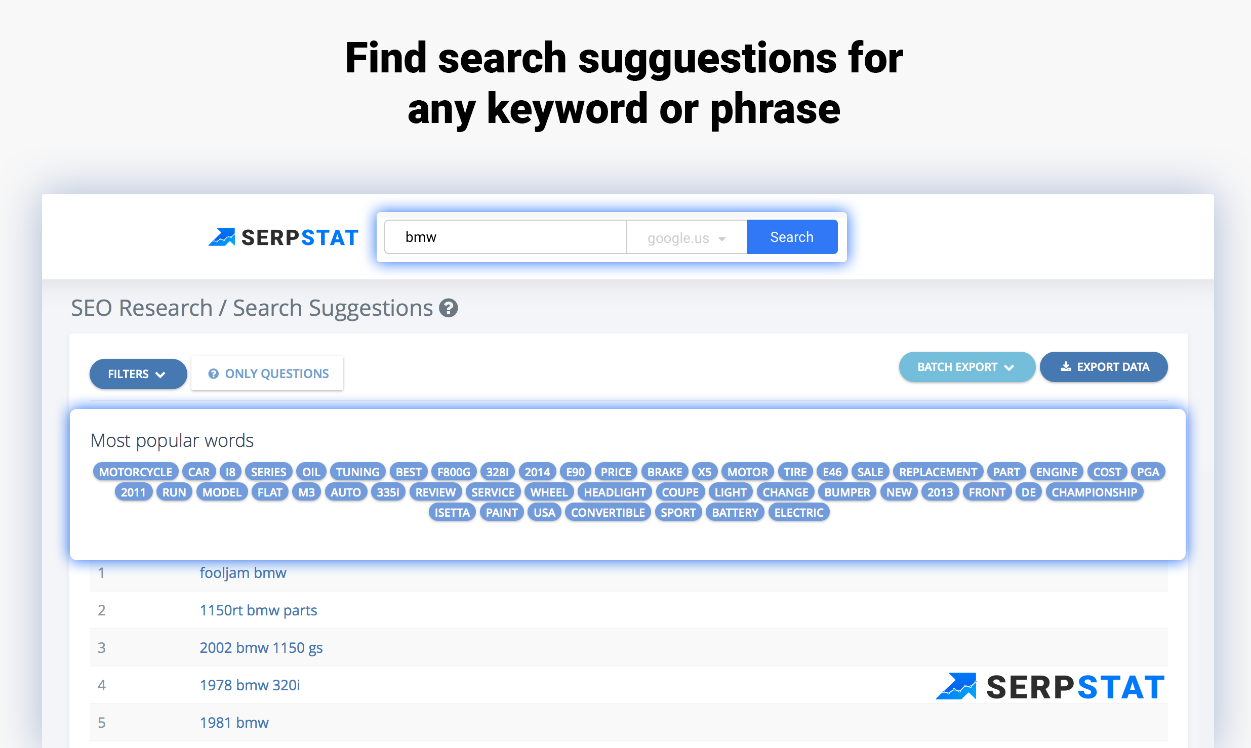 First of all, the Search Suggestions tool on Serpstat is free, so you can use it as much as you want. We mostly work with big data mostly used by SEOs, but this particular tool has a lot to offer to general public too.