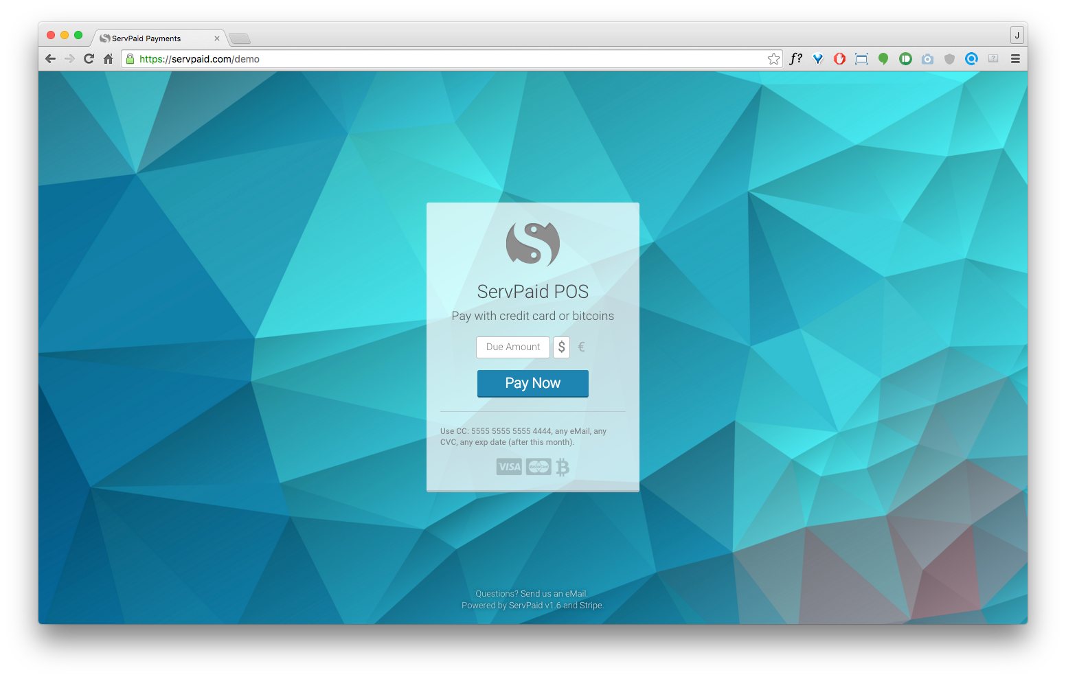 ServPaid It's a "Pay me" page where you can get paid with credit cards or bitcoins (like a front-end for Stripe).