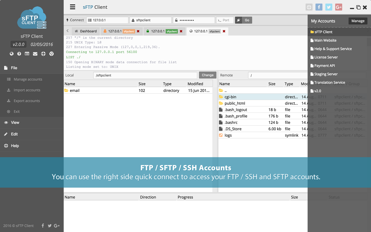 sFTP Client is all about simplicity, it has been built on the Google Chrome / Chrome OS packaged app interface allowing the app to be fast and responsive. Some of the functionality inclu… See more
