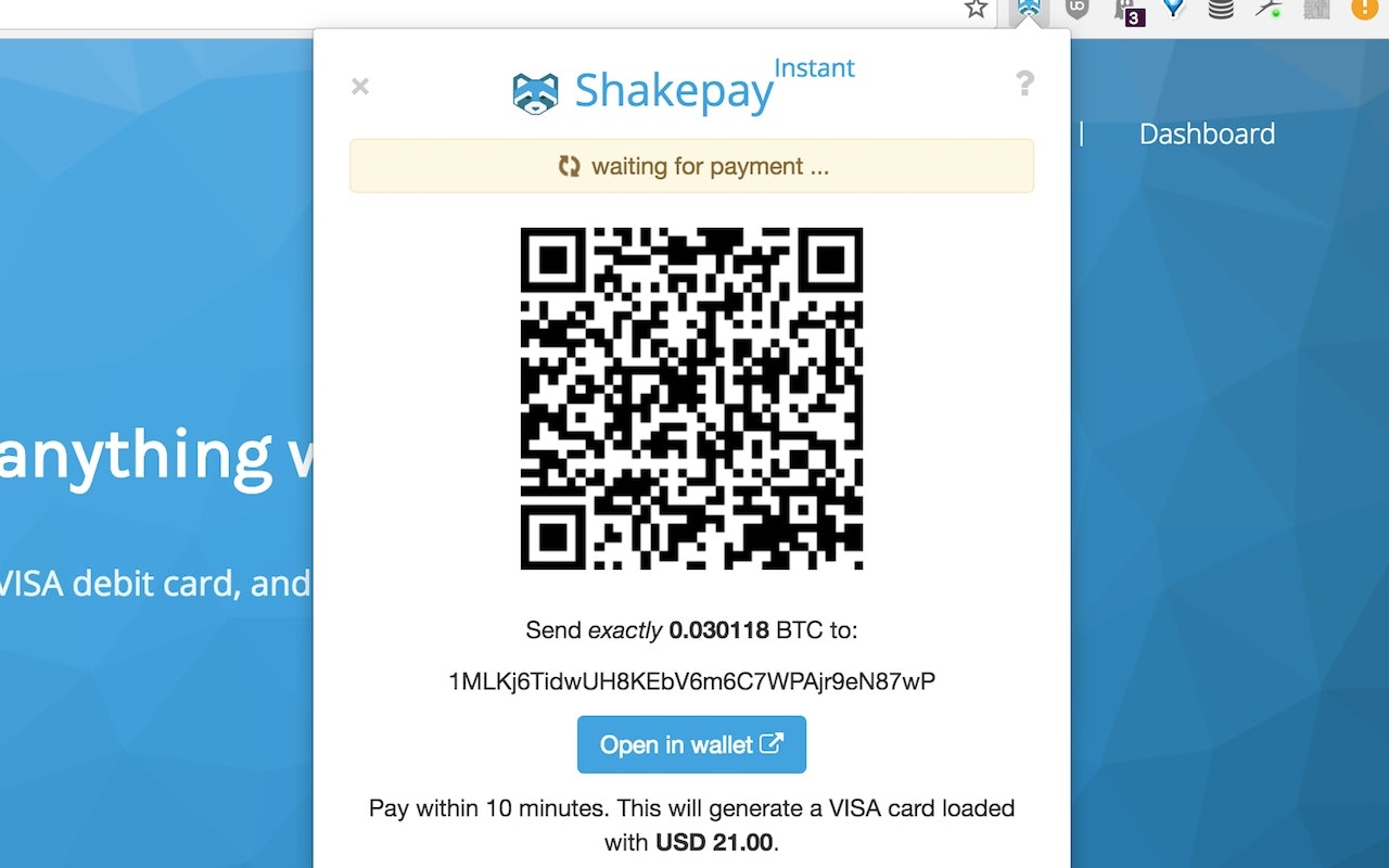 I've been a user of their Android app for some time and I love that I can tap & pay with a Bitcoin-funded account. Now they're launching this awesome Chrome extension to generate VISA cards on the fly, so everyone can pay on any website with Bitcoin! ๐๐๐