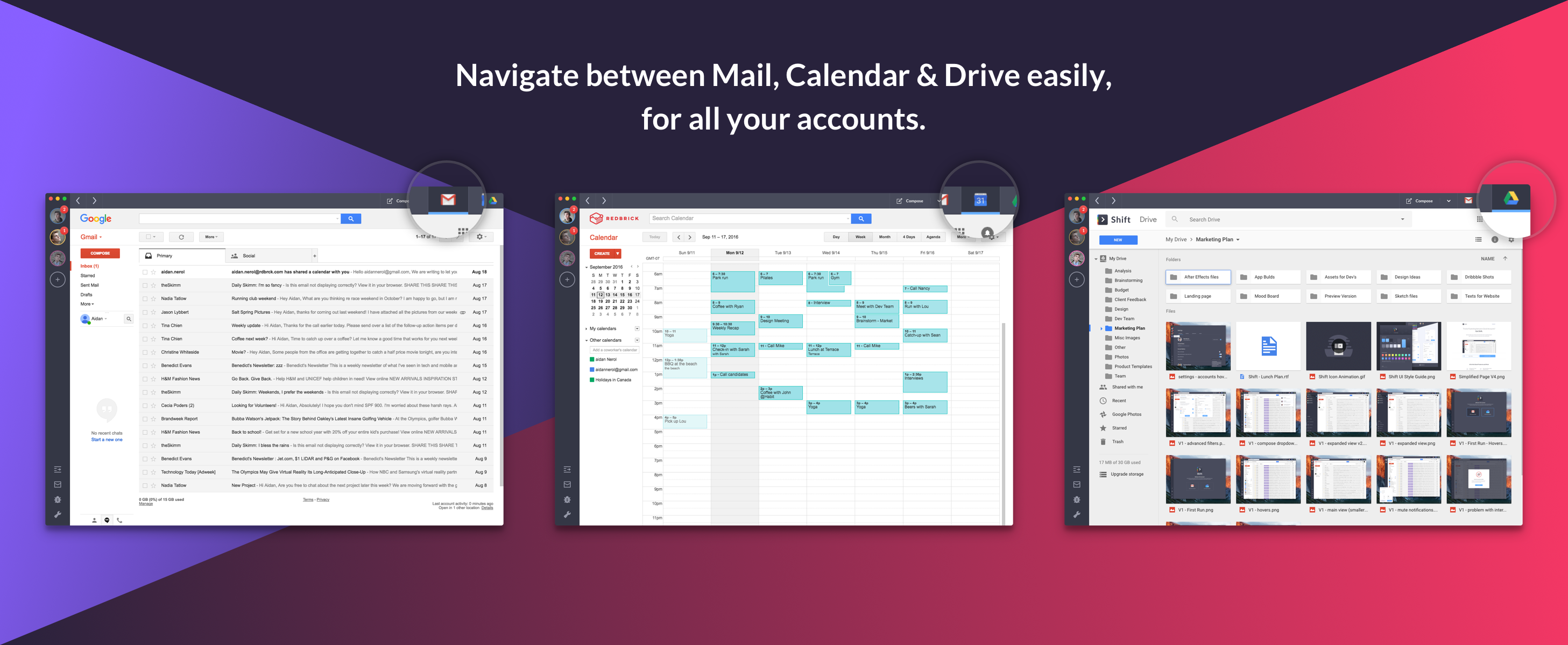 Shift is a desktop app for streamlining all of your email and app accounts. Easily manage Gmail and Google Drive | Messenger, WhatsApp, Slack, and 500+ apps.