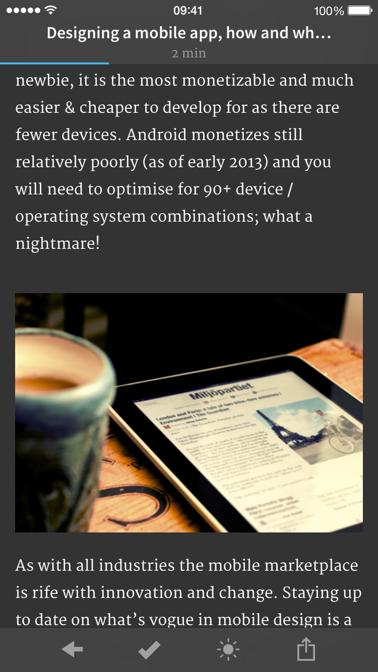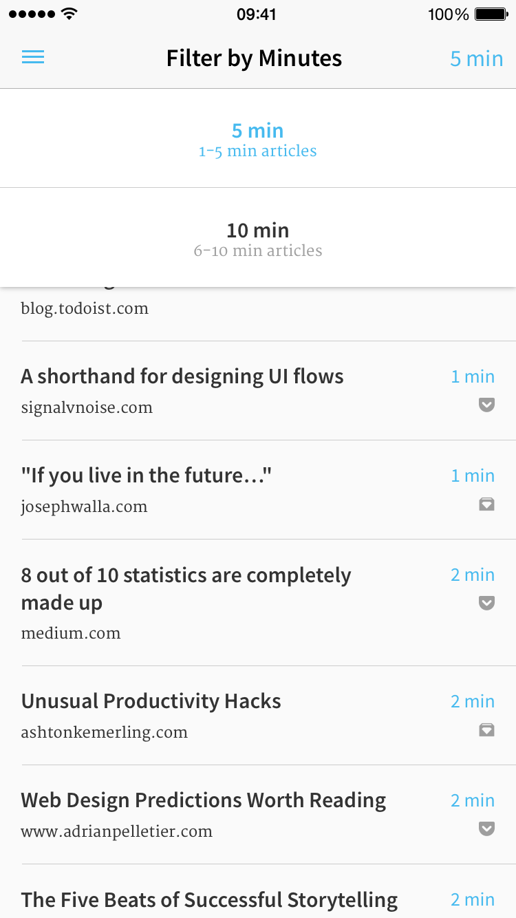 Short is a reading app that filters only Short articles for you. So when you have time, don't waste it and read on Short to keep up with your ever growing reading list. Short imports articles from Read-It-Later Apps like Pocket, Instapaper and more, you can choose articles filtered by minutes to match the time you want to spend reading.