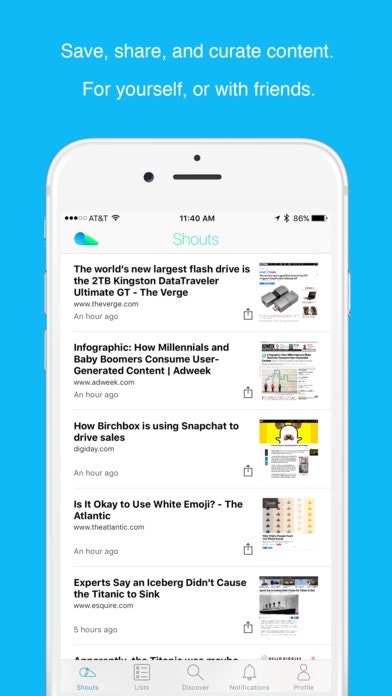 Hey everyone! I'm the founder of KYA, the company behind Shout. With Shout we wanted to build an app that was super easy to use, one tap/click sharing/saving of content for yourself and/or with friends and followers. We're really excited about the release of the app. I'm happy to answer any questions!