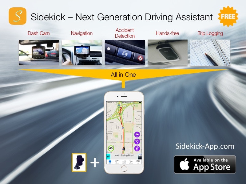 Sidekick brings together the things drivers need for daily commute and added safety related function on top to make it useful for everyday driving.