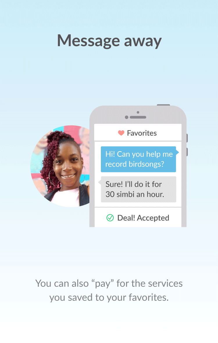 Hey Product Hunt! Simbi is a network for bartering services. I love it because it allows anyone with a talent or side-hustle to earn credits that you can use to get things like artwork, fitness training, or graphic design you otherwise couldn't afford. Check it out!