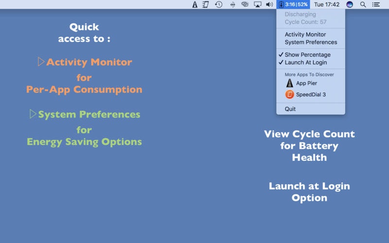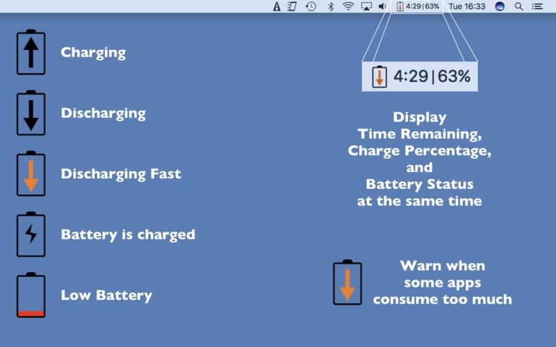 Battery Time Remaining, Percentage and Status on Menu Bar