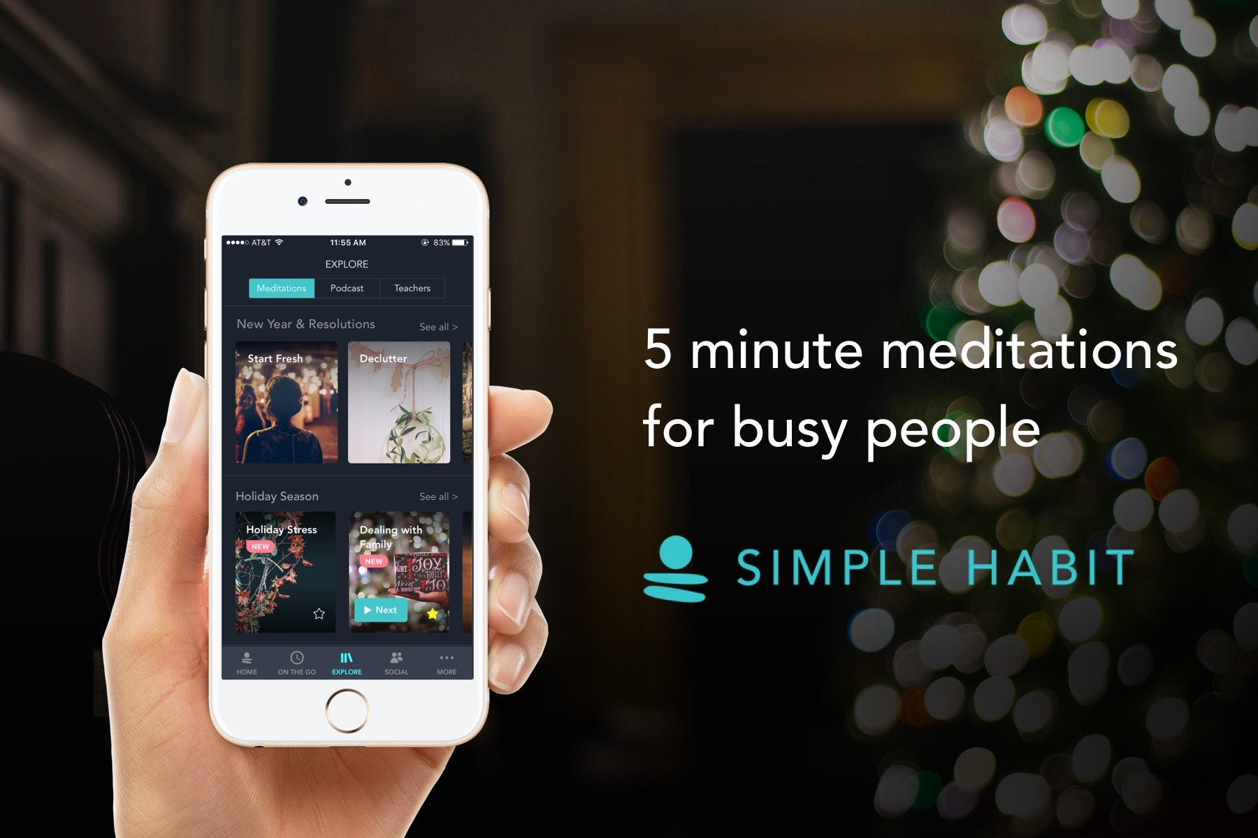 Simple Habit is the first company to launch from the YC Winter 2017 batch. They're a bit like Songza for meditation. They have curated lists of meditations for every activity -- commuting, dealing with stress, taking a bath, etc. They just launched a collection of holiday themed and New Years resolutions meditations.