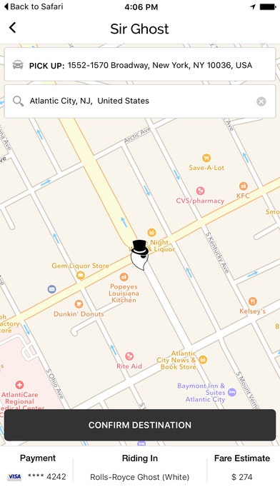 When Uber Premium or XL doesn't tickle your fancy enough, request a Rolls-Royce using Sir Ghost. I can see myself using this on a special occasion as a surprise to someone and putting them in shock. I did a fare estimate from UWS to Grand Central and it was $250. Not cheap by any means, but not outrageous either.