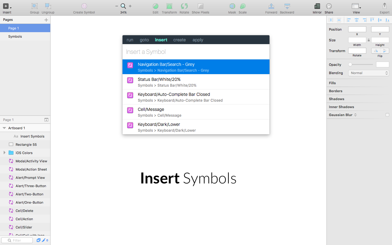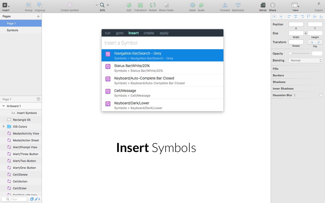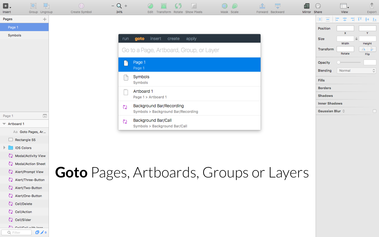 With Runner you’ll get an intuitive interface to search and run your favorite plugins, jump to artboards or insert symbols. Say goodbye to nested dropdown menus!