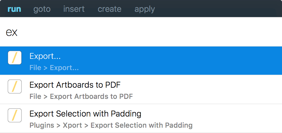 This reminds me a lot of the Command Palette in Atom. I changed the shortcut to match Atom's so I can have the same flow when switching between design and code.
