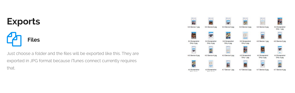 With the new iPhones, it's now a huge pain to create screenshots for iTunes Connect. This tool was created to save a ton of time.