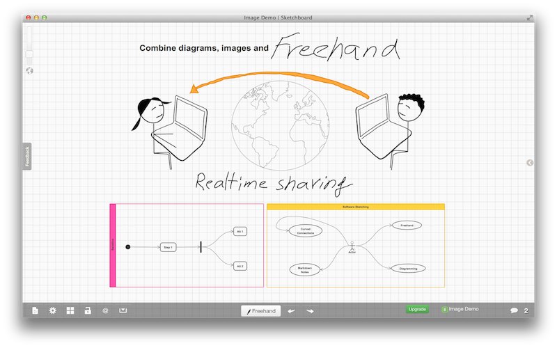 Sketchboard can also be effectively used for idea development, workflow, to sketch use cases and also for agile software development. No installation is required.