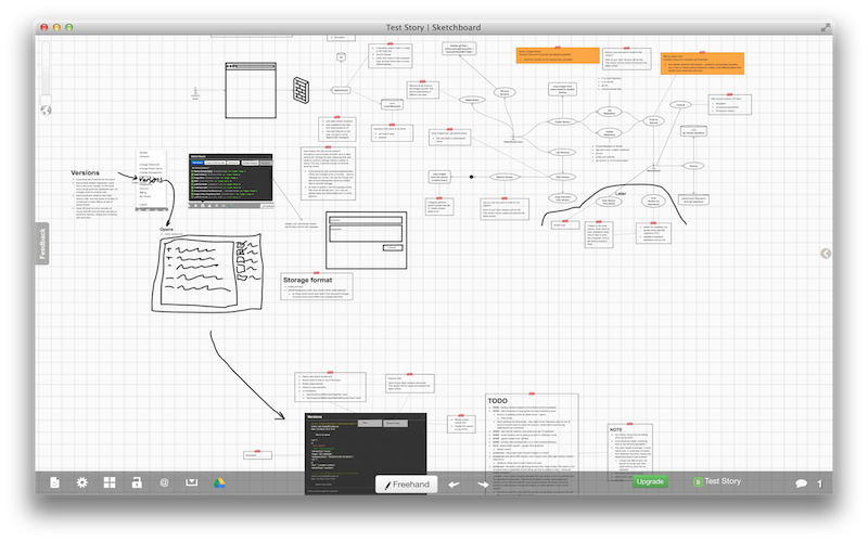 Hey there! Some background reasons why Sketchboard was started. Basic idea has been to allow remote teammates to focus on an idea, rather than how a drawing would look like, still having emphasis on structural ideas with sketch like shapes.
