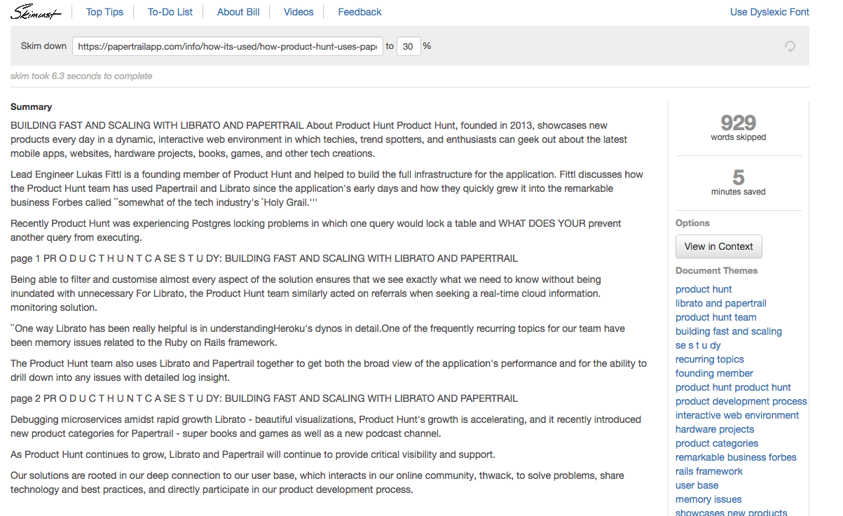 Great idea from Prof. Hollingworth. In essence, the more it reads, the more it learns. It simulates the skimming process of a skilled reader automatically in a format that is accessible for digital content, profoundly advancing how digital text can be processed and effectively read by a computer.
