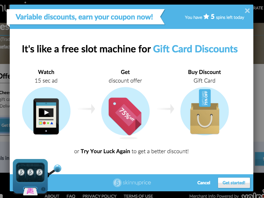 Hi Product Hunters! Skinnyprice is the latest pricing innovation offering variable discounts on gift cards. Rather than list one deal that is available to all, Skinnyprice customers can self select the discount that they are willing to buy, offering different discounts to each customer on each purchase. It’s like playing a slot machine for gift card discount… See more