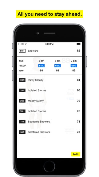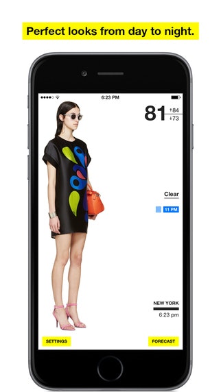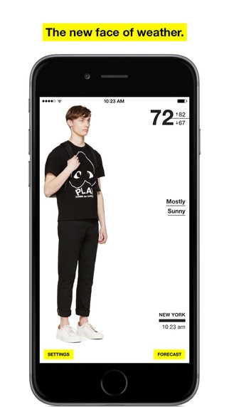 Nice, simple design. Great if you want an idea of a weather-appropriate outfit for the day, or if you just want to know if it's going to rain!