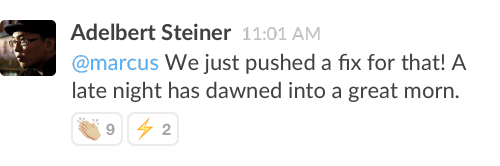 I didn't work on this but have been testing it on the internal Slack since joining and have found it super useful and interesting and fun. We're all really curious to see how the world reacts to it. Will it be with a π or a π± or a π? Submit your own reaction below.