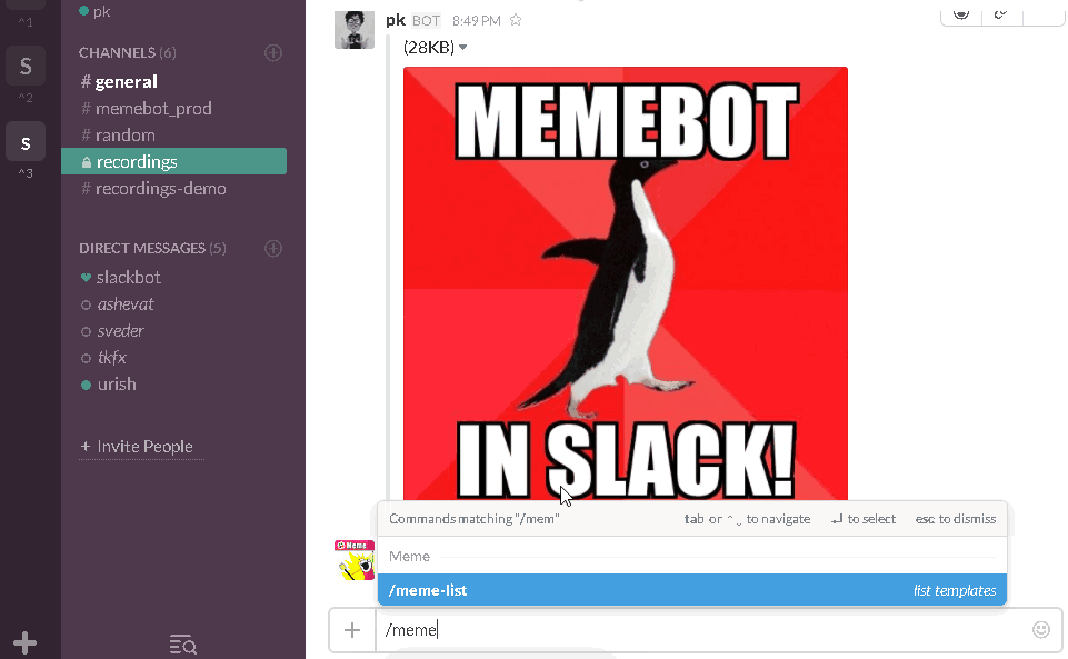 We've created 'Slack Meme Bot' just so you can spice up your team's conversationד, within Slack rather than alt-tabbing every single time.