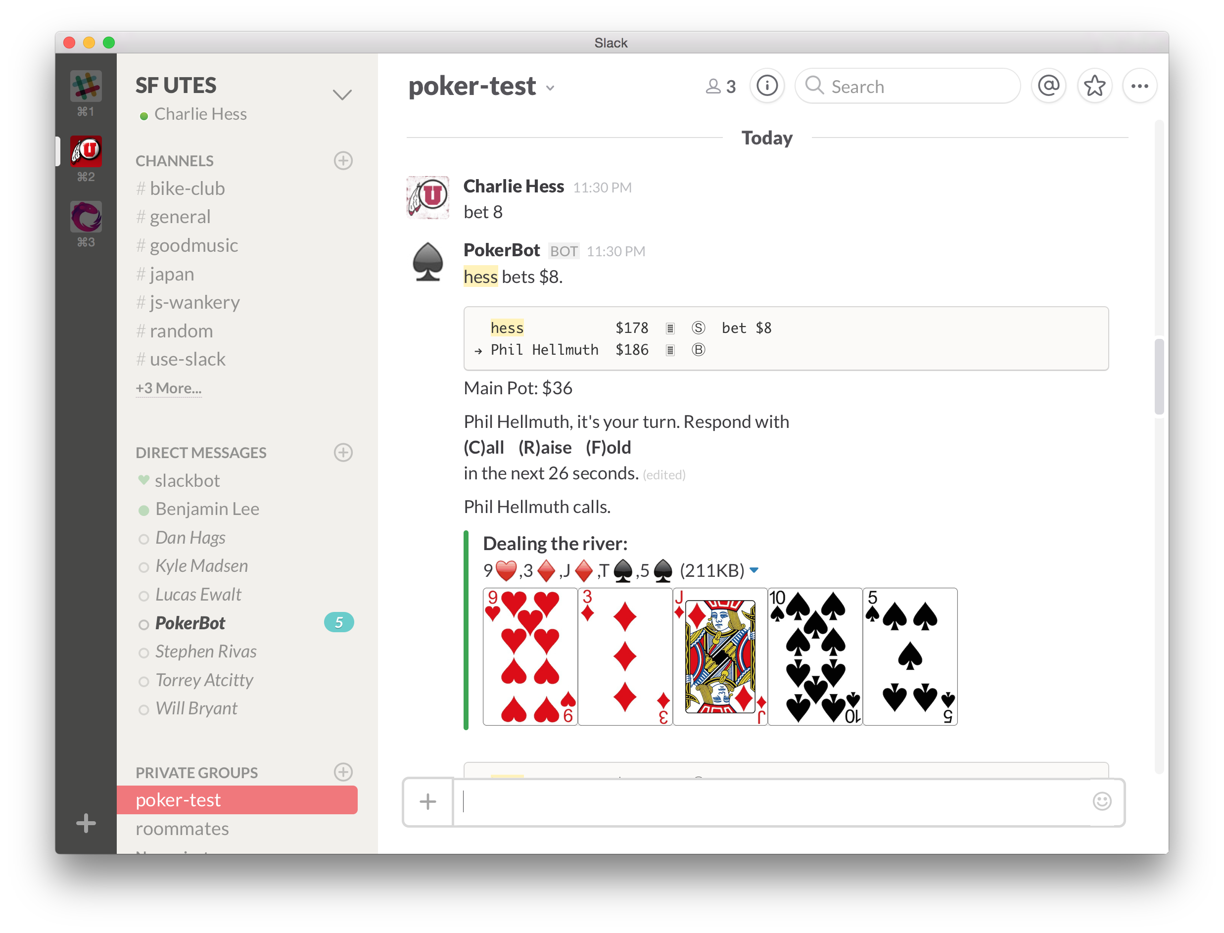 This looks like a fun way to kill some time in Slack (after work hours have ended...maybe?). Here's a video of it in action: https://www.youtube.com/watch?v=Joku-PKUObE