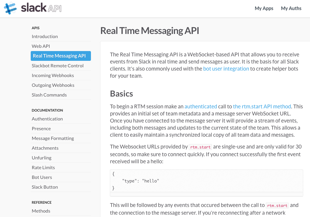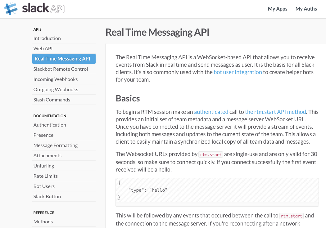 The RTM API is the same one our clients use to talk to our servers, and because of that, it can give you real time updates on everything that happens in your team. Everything. That doesn’t just include the messages in channels, but also stuff like updates to files, comments, stars, user presence, us… See more