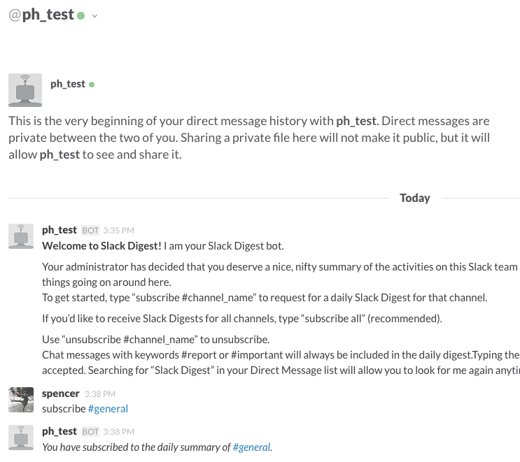@leonpals Yup! We will send a DM to all users and if they want to opt in, they can just type to the bot: "subscribe #general or subscribe all". Likewise, they can also "unsubscribe #general or all"
