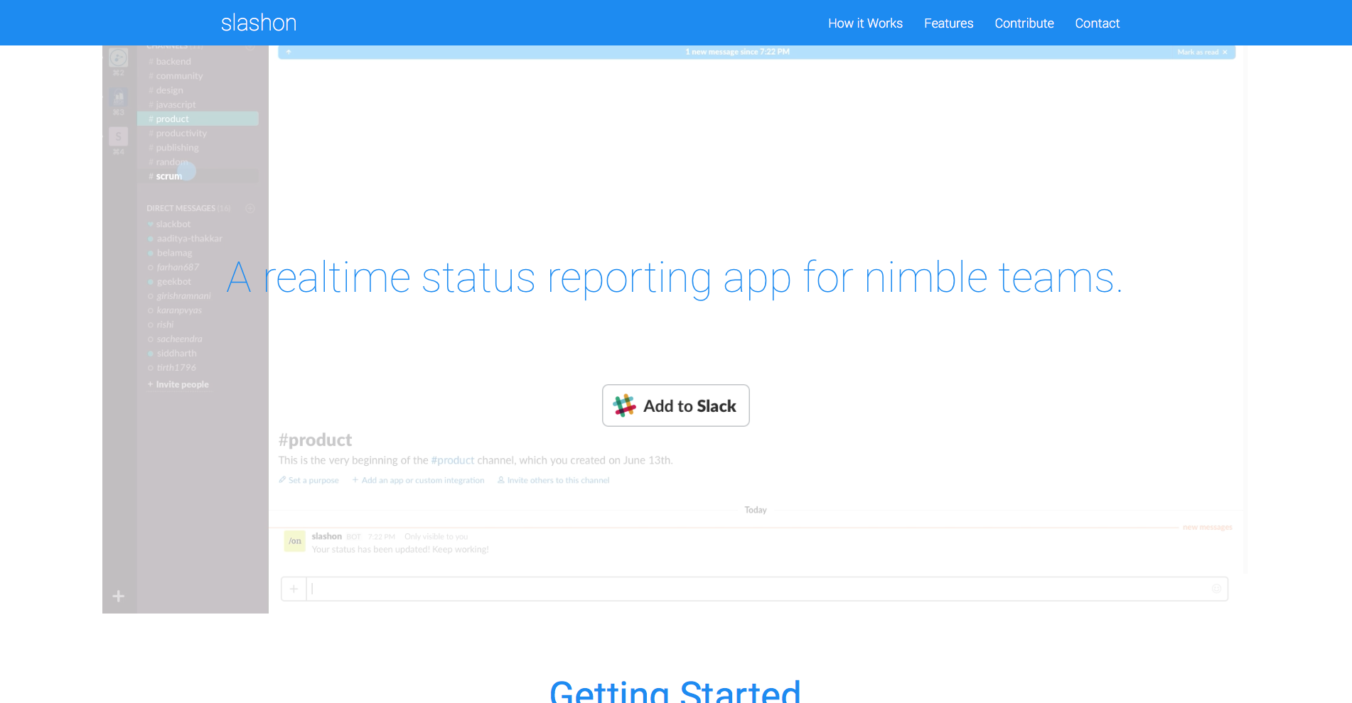 We decided to make #slack work for our daily standup meetings. Realized very quickly that different timezones make it hard to do synchronous standups effectively. And thus, *slashon* was born. It let’s anyone in the team update their current status with a */on* command and everyone will see the stream of updates on a configured channel (like #slashon).