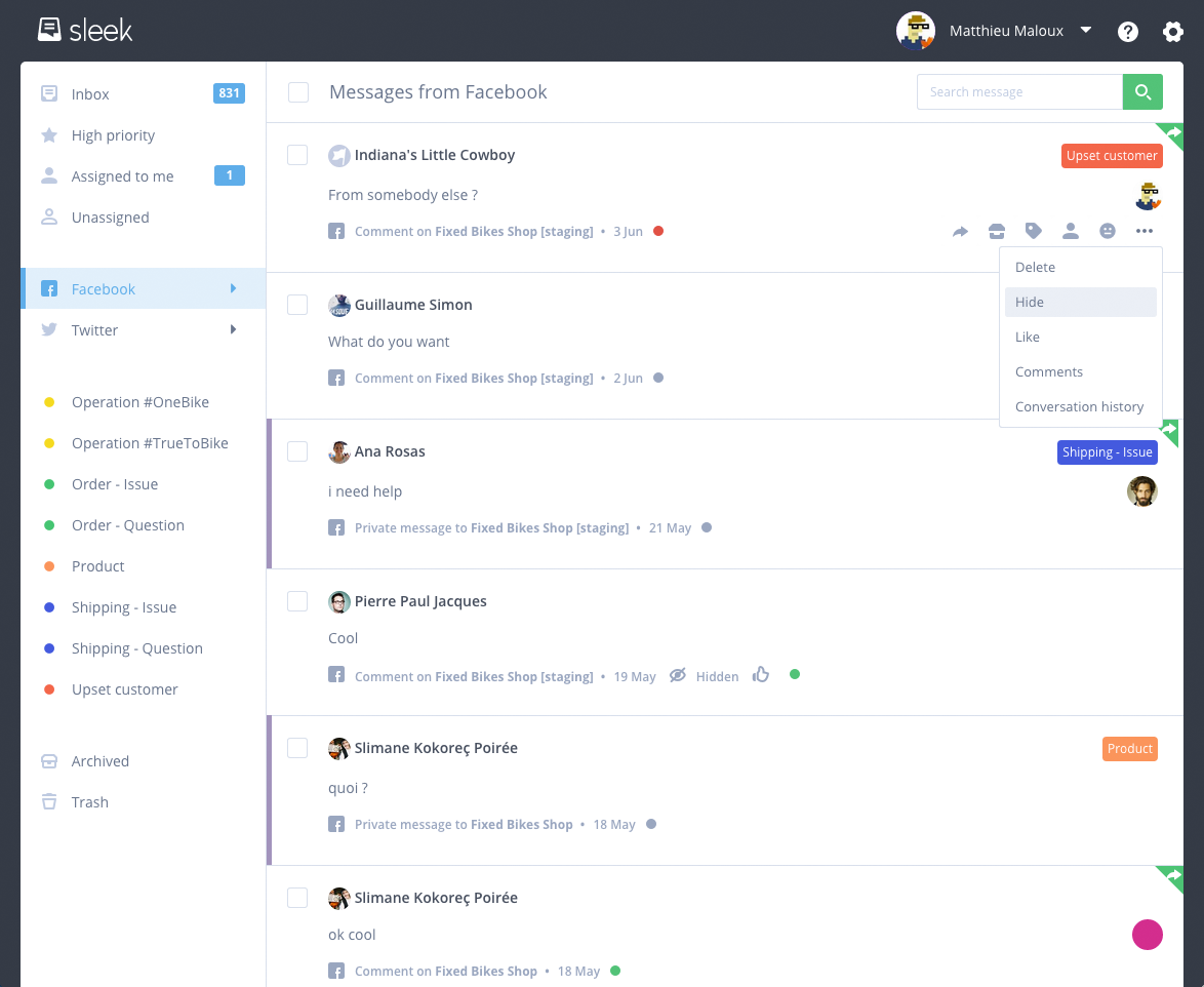Sleek is a brand new take on the old « Social CRM suite » - it does only one thing : cut down on the noise, organize and prioritize your social conversations in one single feed.