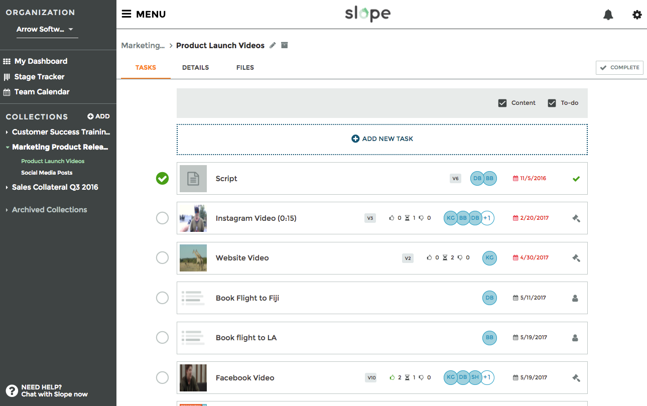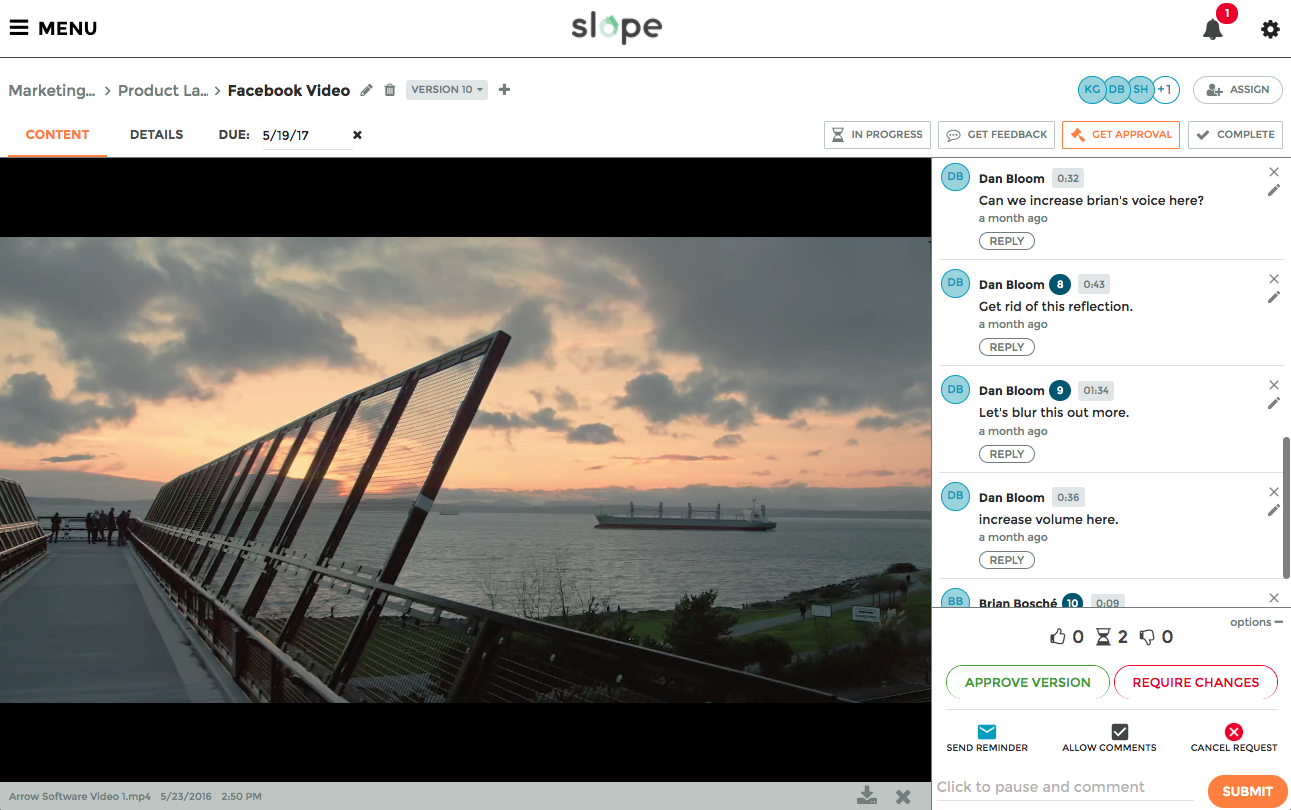 Slope is a simple way for teams to manage creative work—it combines the power of basic project management with creative collaboration and review tools.