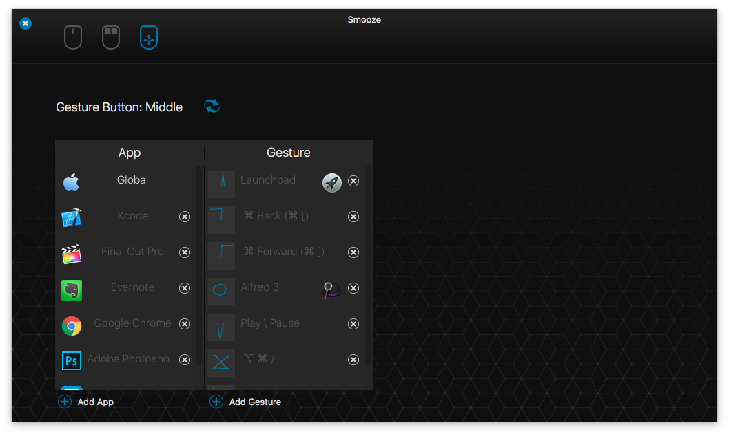 - Assign gestures to any button / shortcut / app