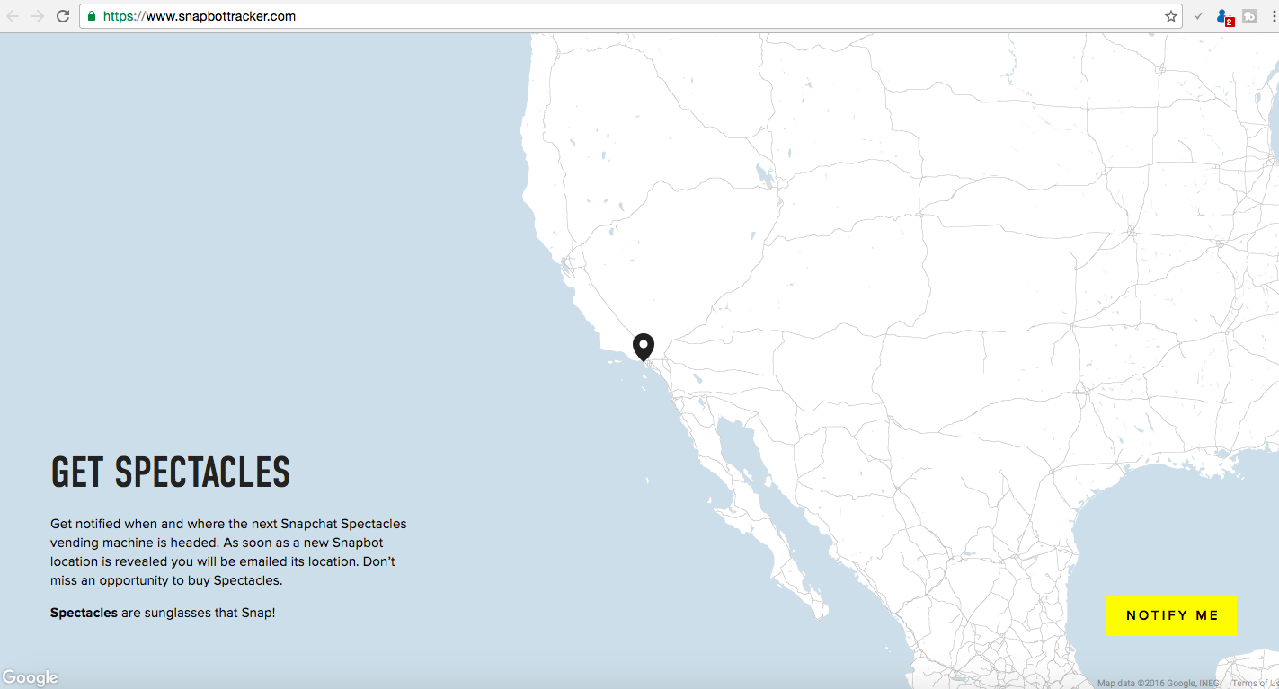 Get notified when and where the next Snapchat Spectacles vending machine is headed. As soon as a new Snapbot location is revealed you will be emailed its location.