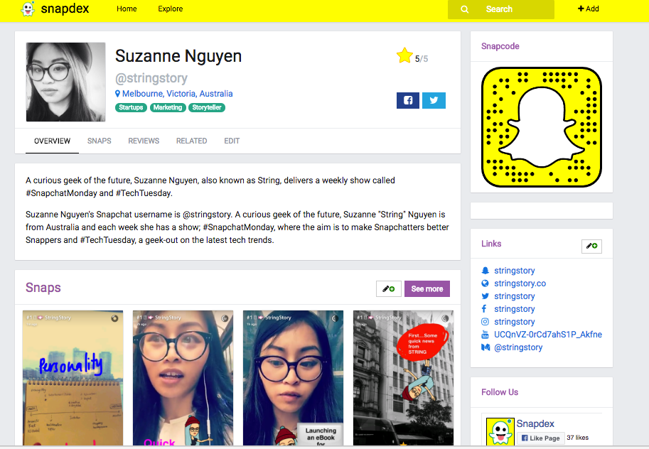 I found Snapdex while I was googling more information about Snapchat, when I stumbled upon Snapdex, a wiki-like directory for Snapchat users.
