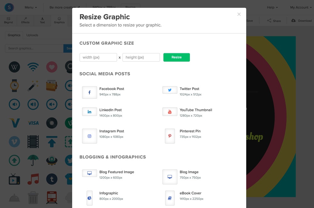 Snappa helps you whip up graphics for social media, ads, blogs and more without Photoshop or graphic designers.