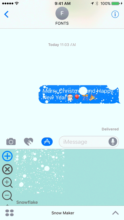 This iMessage app provide static and animated snowing effect for overlay on iMessage Conversations.